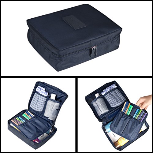 uxcell® Toiletry Travel Cosmetic Makeup Toiletry Case Wash Organizer Storage Pouch Navy Blue