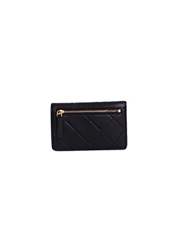 -. Feature : Color: Black / Fabric: Leather / Quilted / Gold Tone Metal Detail / Snap Foldover Closure