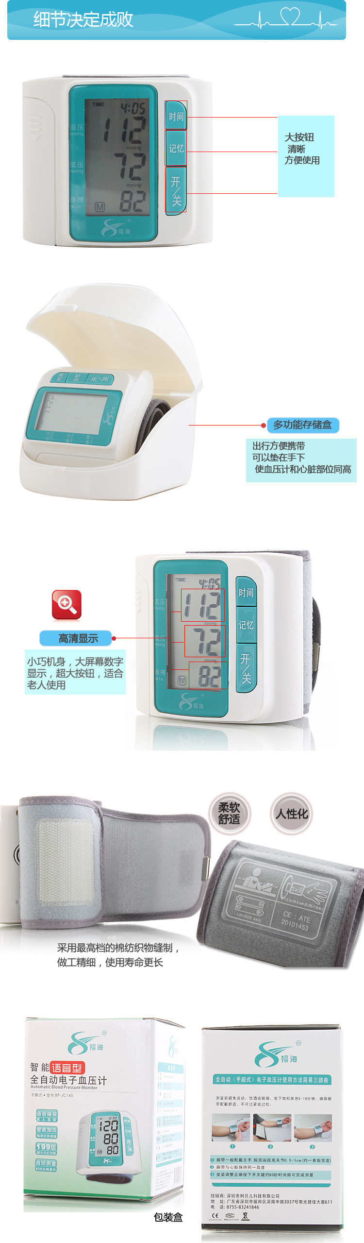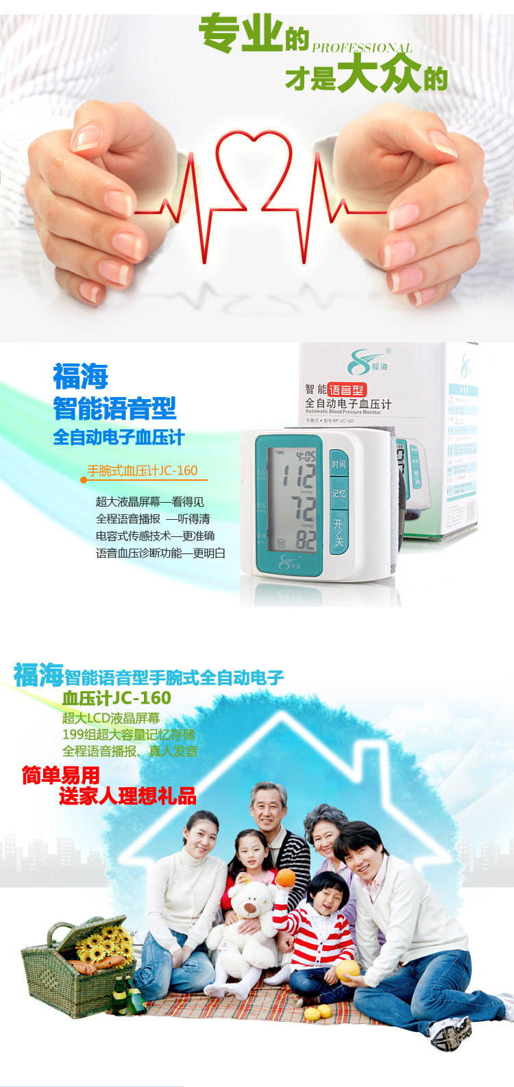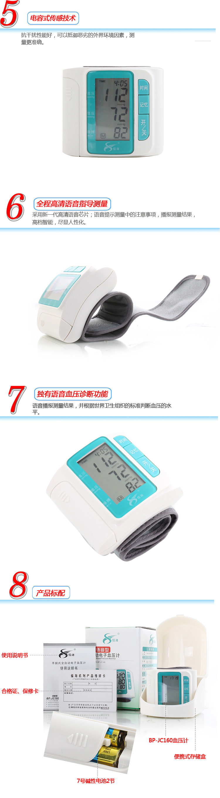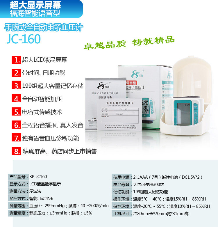 新款福海语音全自动手臂上电子血压计BP-380A正式上市,现火热销售中,原价310元,现价155元,进口机芯,测量精准,语音播报,WHO高压提示等强大功能,请此处进入>>>
