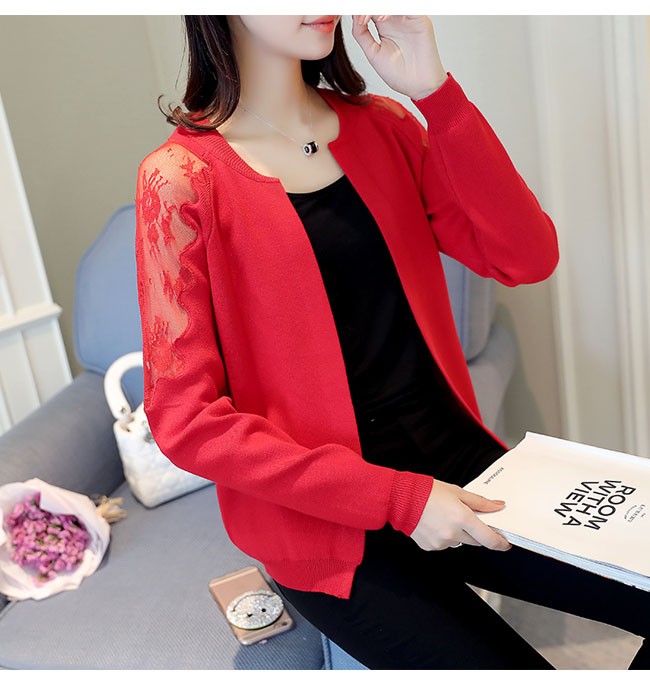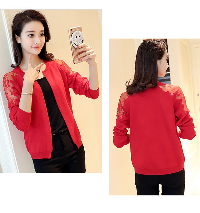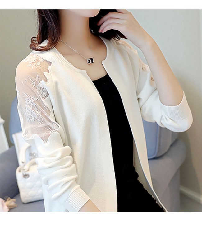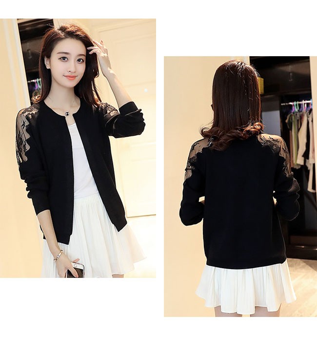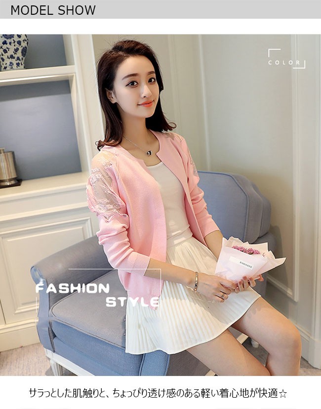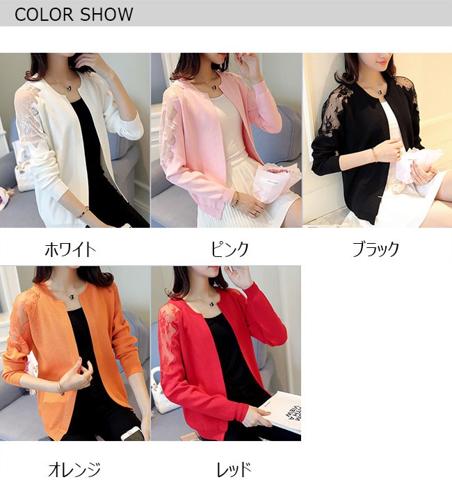 | 商品名 | 肩掛けカーディガン レース切り替えカーディガン ショートニット レディース 長袖 無地 ゆったり ニットトップス アウター 薄手 2017秋新作 |