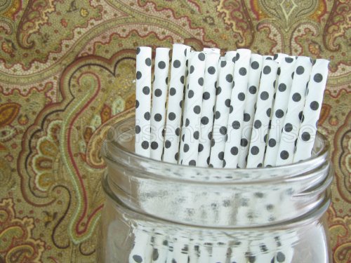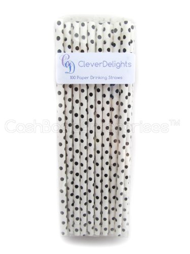 CleverDelights Biodegradable Paper Straws - Black Polka Dot - Box of 100
