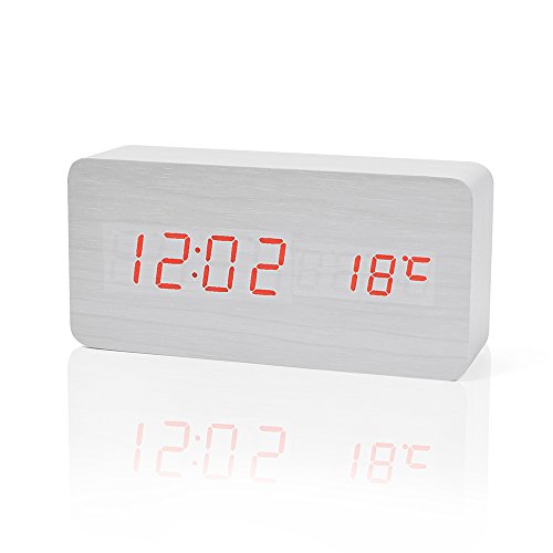 -. Feature : 「多機能」 アラーム3パターン・音感センサー・輝度調節・設定記憶・省エネモード・12H制/24H制表示・日付・室温表示(-20℃~+50℃)▼ちなみに、乾電池は記憶用として搭載しているので、常にUSB電源を使用してお勧めです。 / 「シンプル」 余計な飾りを全部捨てられ、木目調目覚まし時計の美しさを還元します。文字盤が大きくて、時間がわかりやすい。LEDで明るくデジタル表示されるので、遠くから一目で時間がかかります。針がカチカチいう目覚ましは寝られない方は是非デジタル時計を試してください。 / 「音感センサー」 夜間に時刻を見たい方は手を叩くと、自動的に表示られます。「バックライト」ボタンを探して押すなどの煩わしい動作がいりません。約12秒経過すると、LEDが消灯しておき、騒音程度や振動を感知した時だけ点灯する機能です。夜にLEDの光が気になる方はご安心してください。 / 「設定記憶」 読みやすい取扱説明書を付属し、誰でも楽に設定できます。そして、記憶機能を搭載します。急に断電しでも表示できなくなることだけで、設定内容を全て保存しました。最初からやり直すのは必要なく、とても便利な機能です。 / 「アフターサービス」 ★万が一、商品が不具合の場合は、無償交換と返金をサポートします。うちの店に楽しいショッピング体験を持っていると信じています。何かご不明な点がありましたら、お気軽にお問い合わせてください。24時間以内に返信を約束します。