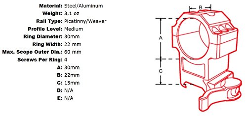 UTG 30mm/2PCs Med Pro LE Grade Picatinny QD Rings: 22mm Wide