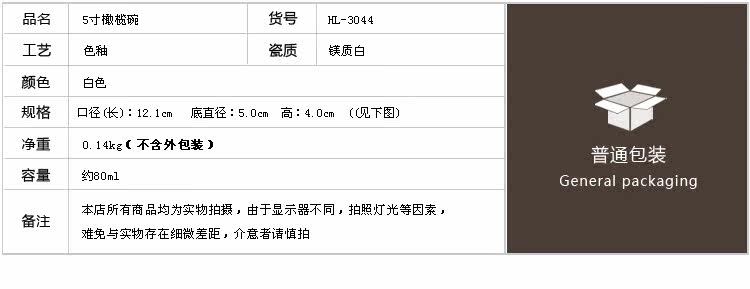 瓷航5英寸橄榄碗酱料碗陶瓷酱料碟黑椒酱碗沙拉碗调料碗创意80ml