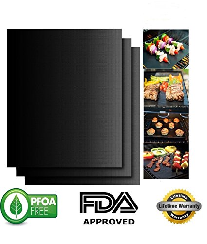 - MADE FROM TOP QUALITY MATERIALS - Our BBQ mats are made from 100% PFOA-Free materials and premium non stick PTFE-Fiberglass coating. With proper care, they can last for years to come. Don't ever risk your family and friend's health again..
