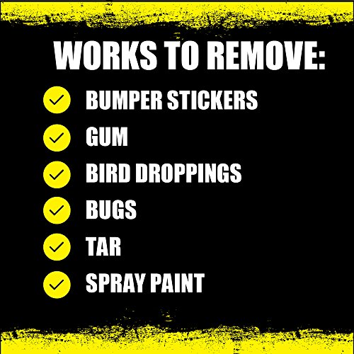 -. Feature : Keep your car at its best, no matter what sticky mess it gets into / Works on bumper stickers, gum, bird droppings, tree sap, spray paint, brake dust, asphalt / Uses the power of citrus oils to defeat the toughest stains / Great for a variety of automotive cleanup projects like auto interiors, auto bodies and rims / Safe on metals, plastics and glass