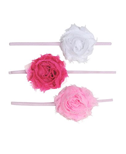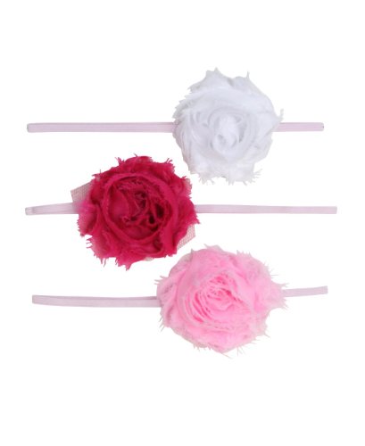 Product Description Dress your little princess perfectly from head to toe, starting with this precious pack of raw fabric rosettes. The set includes 3 separate raw rosette headbands, so she'll be ready with the perfect accessory for any outfit! 0