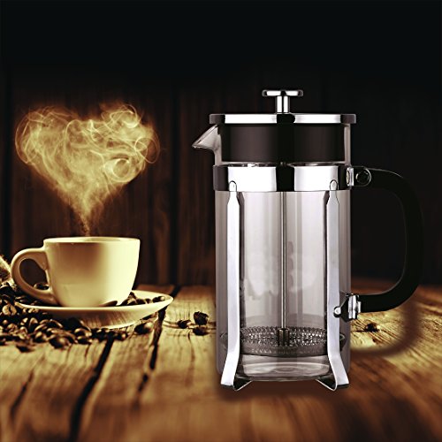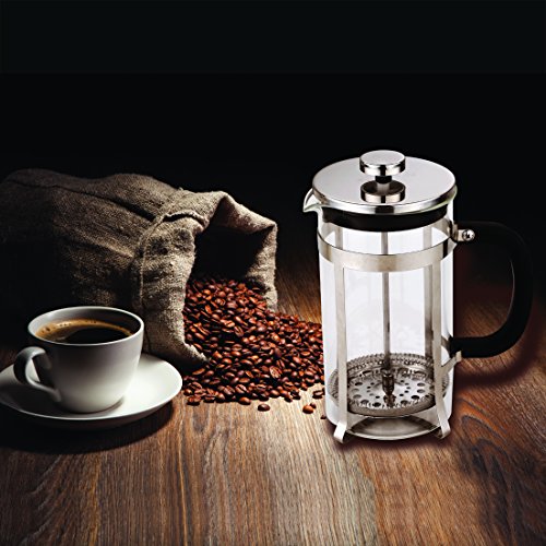 Classic French Press Coffee Tea Maker Cafetiere Why use a French press? This device lets you drink freshly brewed tea and coffee at any time, without much effort. The freshly-brewed drink has a strong aroma and rich taste. You won't get that with your coffee maker. It only comes from a French press. It is also best palm restaurant French press. Safety Instructions: -Not for stovetop use -Check glass beaker for scratches, cracks, or chips. Do not use a pot that is scratched, chipped, or cracked. Install a replacement beaker before using the pot again. -Keep children away while using. Hot water is a hazard to small children! -Do not allow children to use this coffeemaker. Click the Add to Cart button above and start enjoying the best tasting coffee you've ever had made fresh in the comfort of your own kitchen. 0