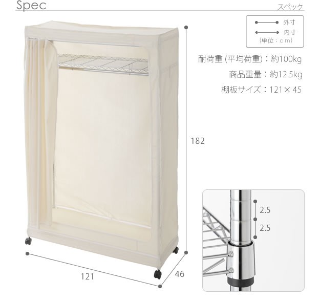 サイズ(cm):幅121x奥行46x高さ182cm・約12.5kg