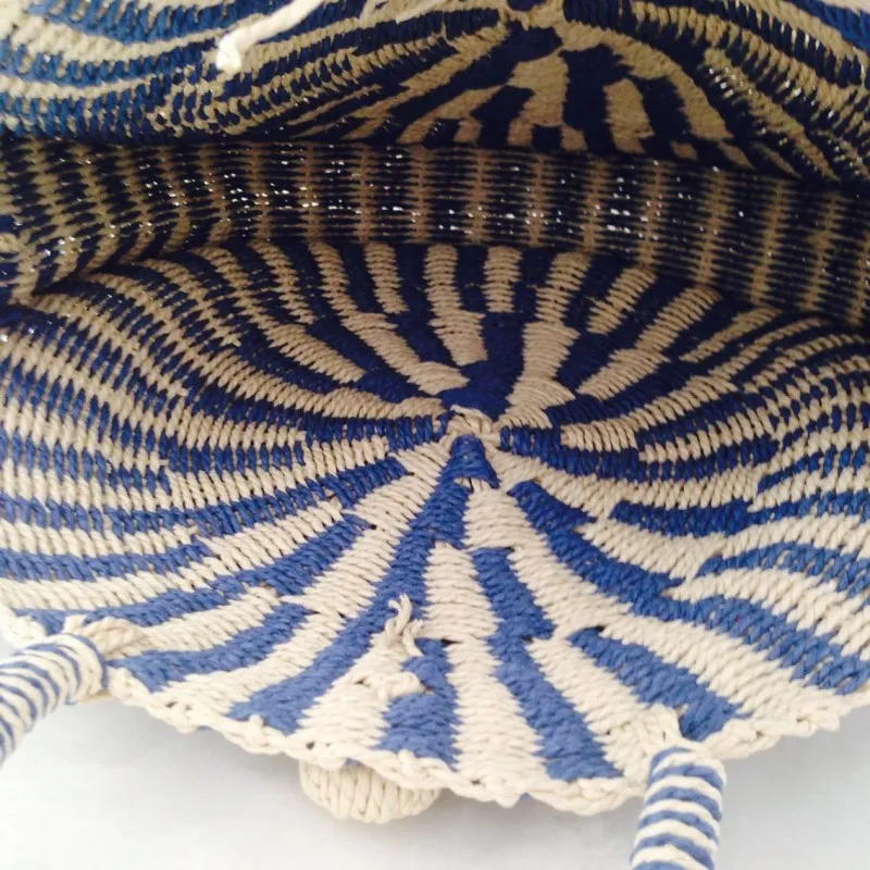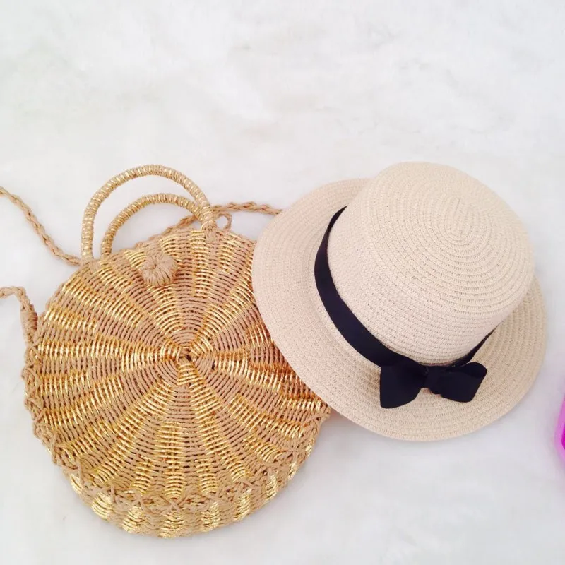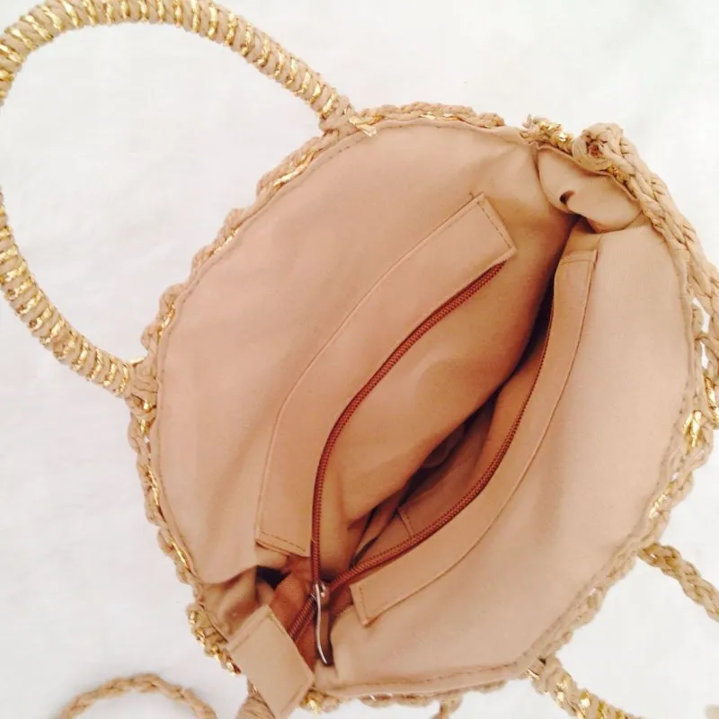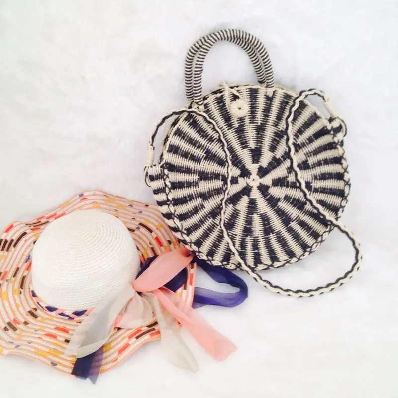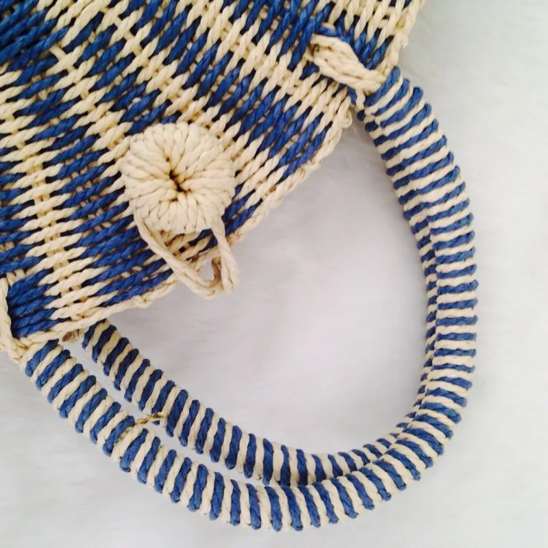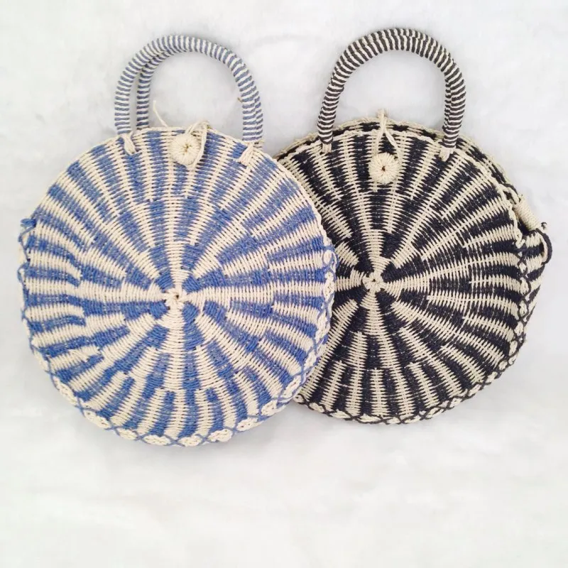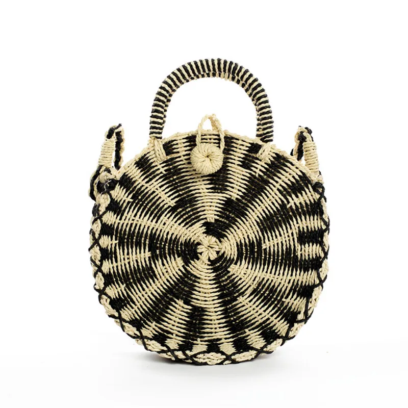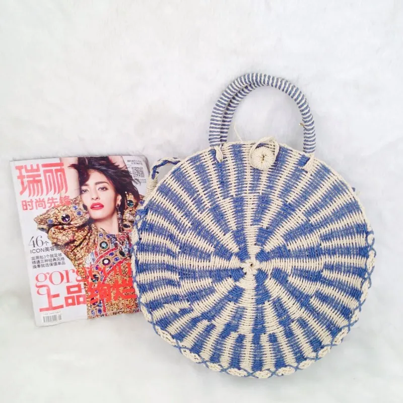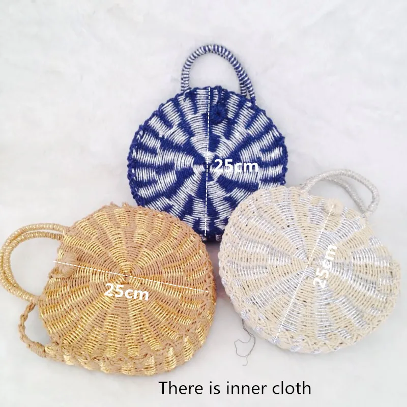 夏新2018ラウンドわらバッグ手作り織ビーチハンドバッグラウンドステッチカラー女性ショルダーバッグビーチホリデーバッグ