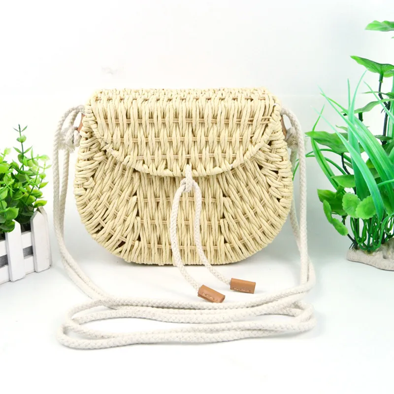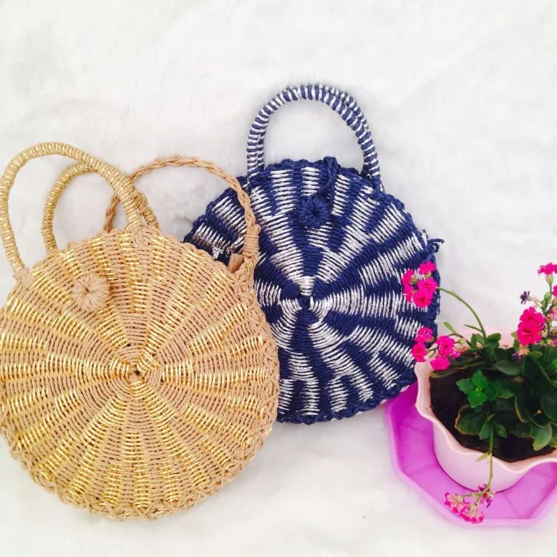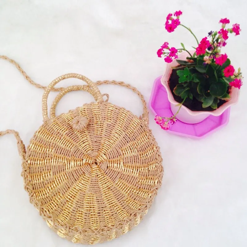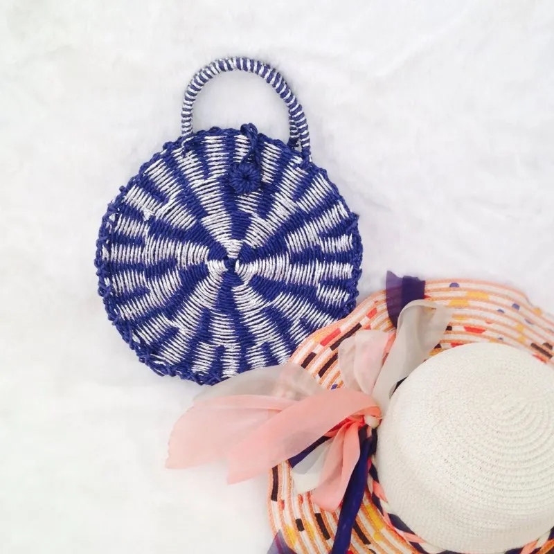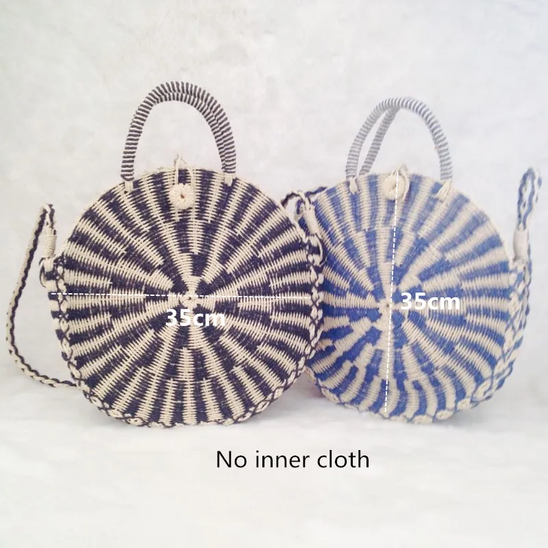 新しい2018女性手作りラウンドビーチショルダーbaghandmade籐織ラウンドハンドバッグニットメッセンジャーバッグサマービーチトートバッグ