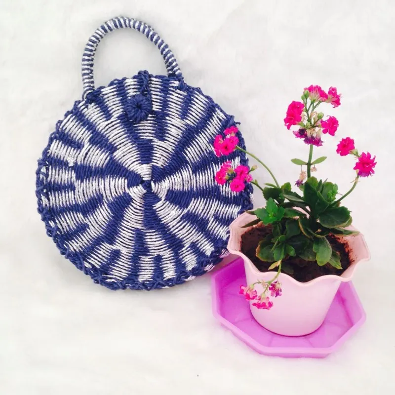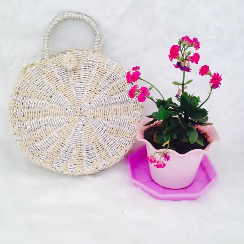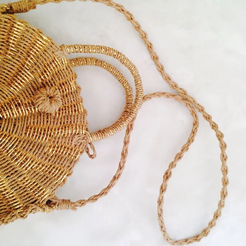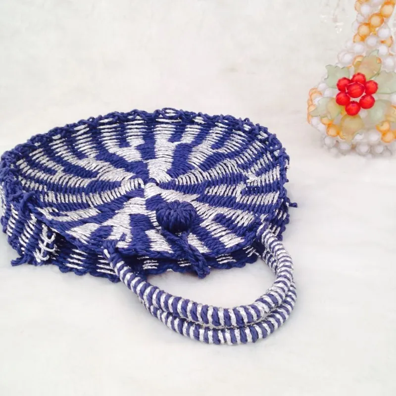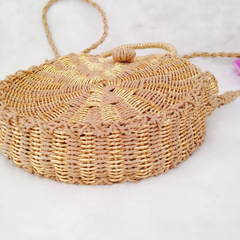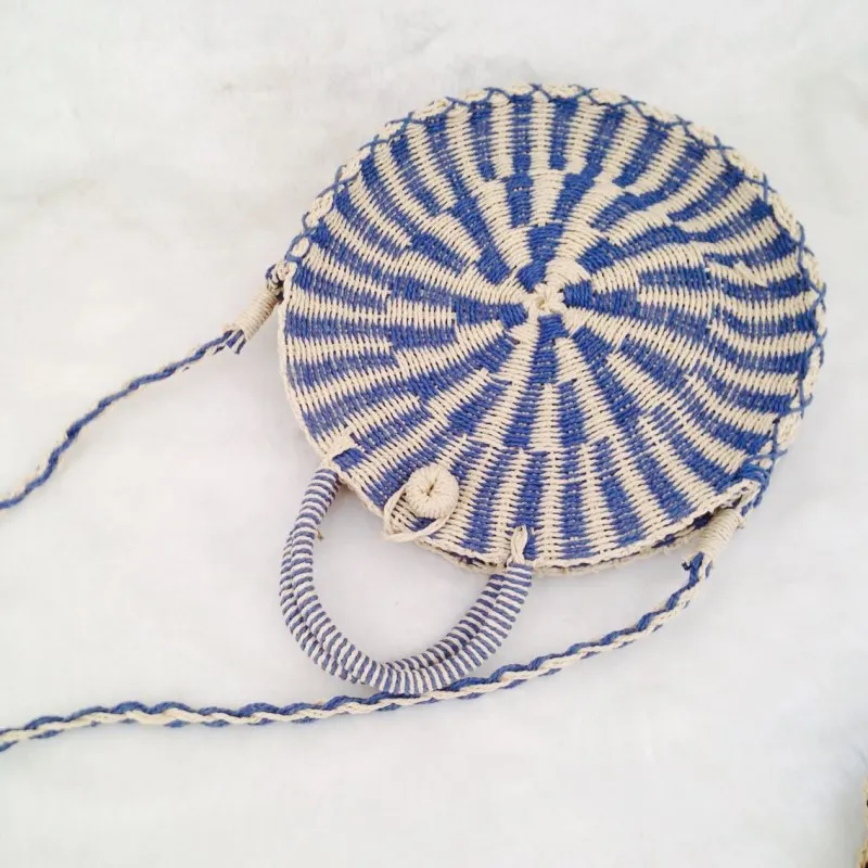 新しい2018女性手作りラウンドビーチショルダーbaghandmade籐織ラウンドハンドバッグニットメッセンジャーバッグサマービーチトートバッグ