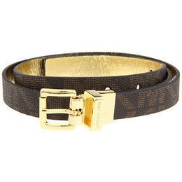 Michael Kors Mk Signature Logo Reversible Brown / Gold Skinny Thin Belt 3/4 Inch Gold Buckle (SMALL)