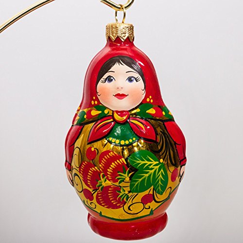 -. Title : Glass Christmas Tree Ornament 'Khokhloma Nesting Doll / Matryoshka'