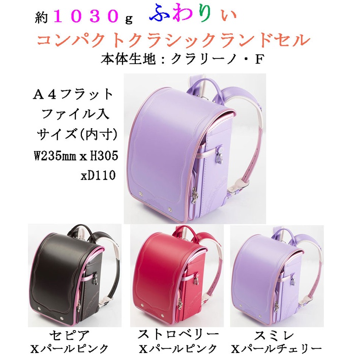 원본상품명: ランドセル?量1030g2018年 ふわりぃオリジナル コンパクトクラシック クラリ?ノFランドセルA4フラットファイル25300日本製ふわりぃランドセルRCP?量ランドセル女の子ランドセル