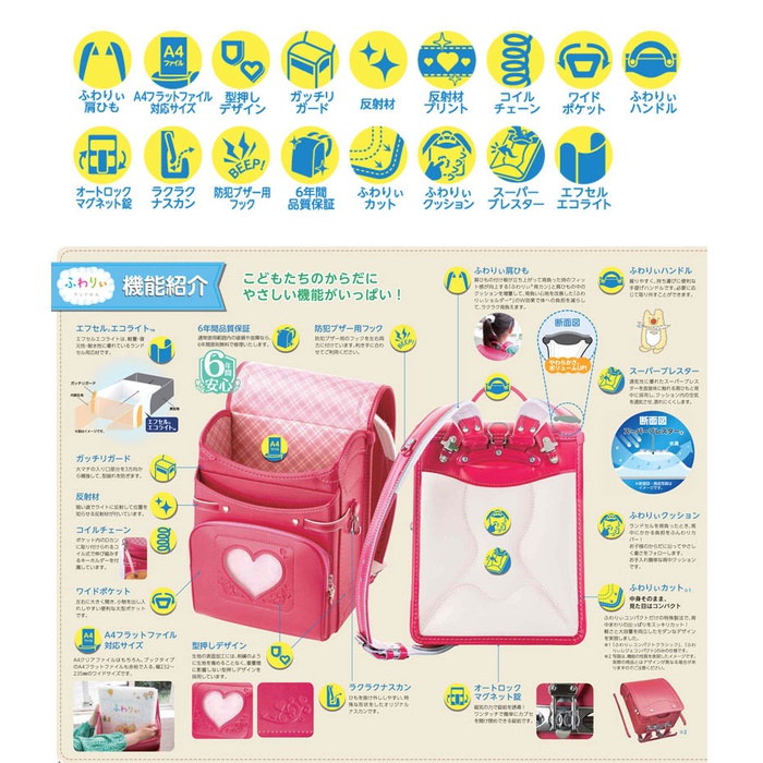 ※이 상품의 최대의 특징은 등 주위의 툭 튀어나옴을 깨끗이 컷 경량과 대용량을 양립한 특수 제법의 란도세루(초등학생이 어깨에 매는 가방)입니다.