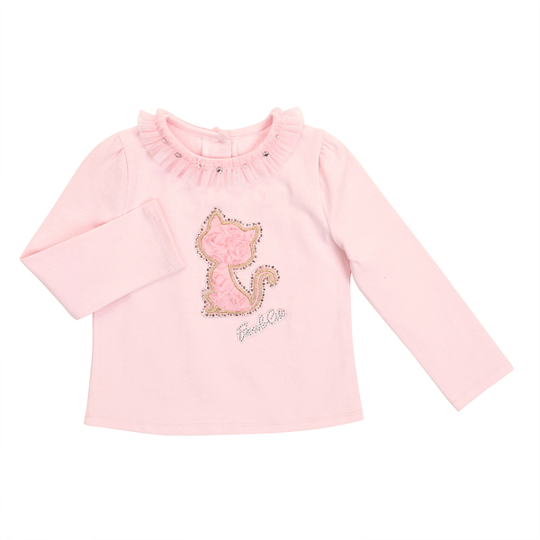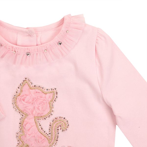 상세설명-목선에 프릴이있어 예쁘면 캣 캐릭터에 장미가있어 사랑스러운 티셔츠입니다