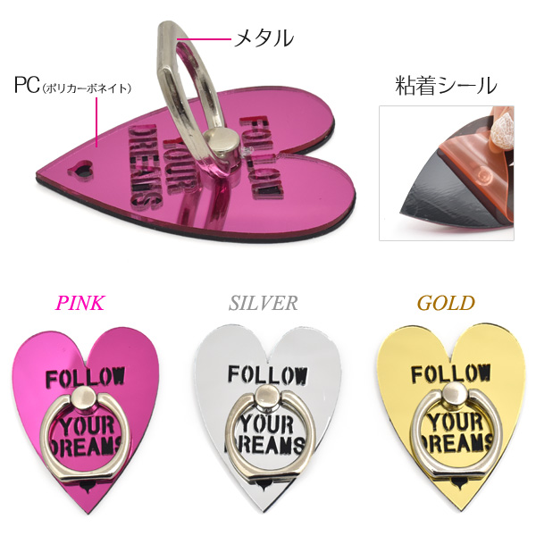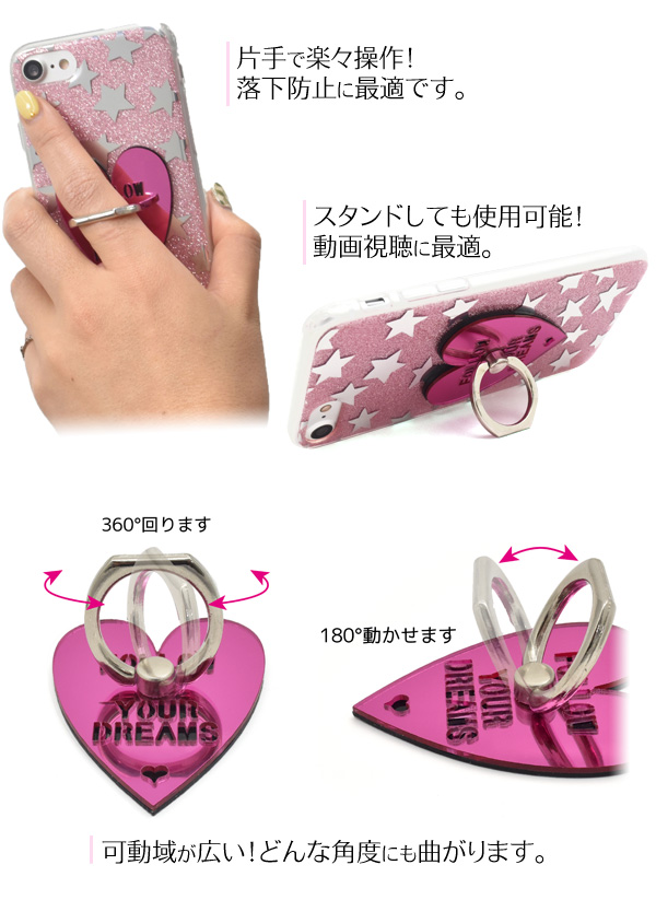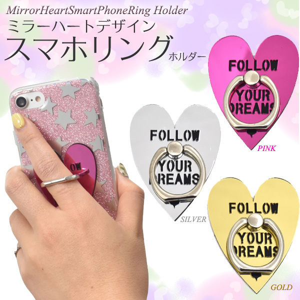 スマホを片手で操作ができるスマホリングホルダー ミラーハートデザイン。