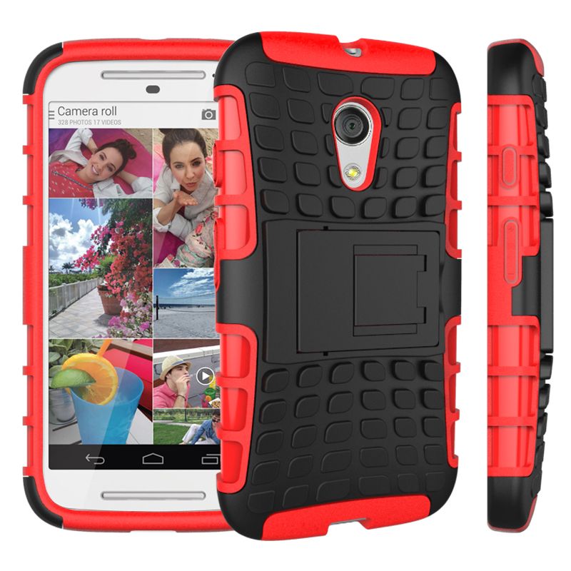 Red Shockproof Stand Hard Case Cover For Motorola Moto G2 2nd Gen 2014