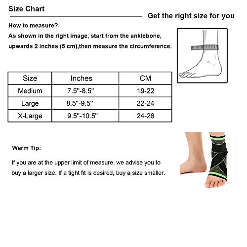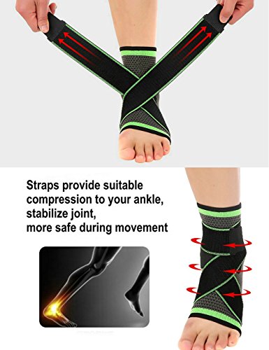 -. Feature : Function:Sports safety protection, Prevent ankle sprain, Relieve ankle joint pain, Reduce swelling, Promote injury recovery / Sports: Suitable for all sports activities like: Running, Jogging, Basketball, Soccer, Football, Cycling, Tennis, Hiking, Volleyball, Cross fit, Skiing / Figure- 8 compression straps: Elastic and adjustable, Stabilize ankle joint and provide optimal compression during movement / Premium quality: Our ankle compression sleeve wrap is knitted by advanced 3D technology machines with high quality and breathable material / Indication: Ankle sprains, Arthritis, Edema, Muscular swelling, Orthosis, Stress fracture, Post surgery treatment