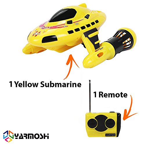 Your search for the Best Remote Control Submarine Speed Boat Toy Model is finally over. When you purchase from us today, you can look forward to... A remote controlled boat for kids designed like a mini submarine. It can dive, float and be propelled on water. On calm waters, it has a motion that is exactly like that of a real boat. A Submarine / Speed Boat that works in multiple frequencies so that two or more kids can play with their boats next to each other without any frequency interference. Otherwise, one kid's remote controller will intermittently control the other kid's boat causing stress to the kids and the parents who have to work it out. Hours of excitement as your kids remotely control the 10.5" long toy from as far away as 100 - 165 Feet. Indoors or out, wherever you have a bath or a pool, your children will be delighted as they learn to control this special two in one Submarine Speed Boat Model. You may be wondering, why this submarine / speed boat is so dependable while others fail? Well, it's simple. We developed this RC toy with an especially short charging time. The short charging time means no more impatient, crying kids because you forgot to charge it. You can enjoy the ultimate power and speed for super fun with the kids. It goes between 3 - 6 miles an hour and can be controlled from as far away as 100 - 165 feet. Most important is the customer service you'll receive when you place your order today.. Give us a try and if it's not right for you, you have 30 days to let us know and get a 100% refund - no questions asked. So purchase now! Click The "Add To Cart" Button Above and Order Your Yarmoshi Ski 'n Dive Yellow Submarine Speed Boat Today! 0