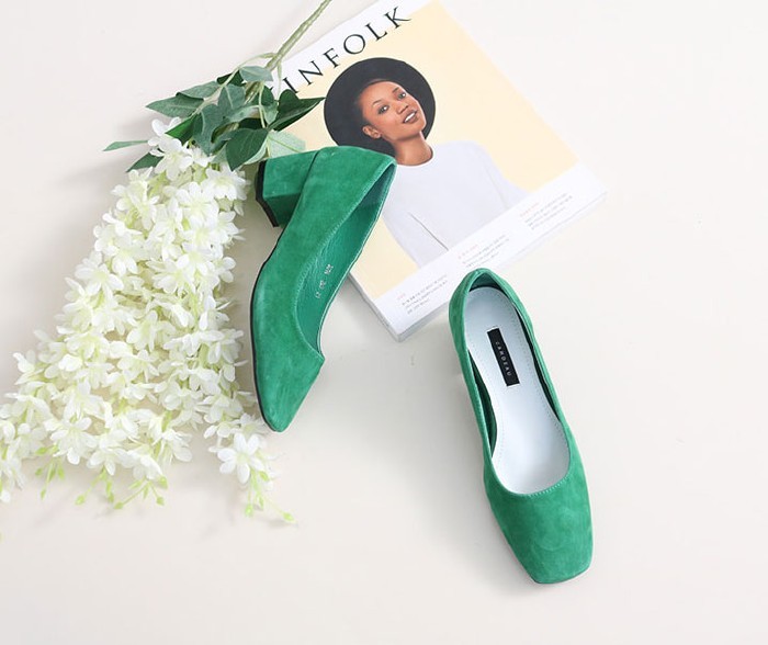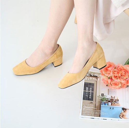 商品名:パンプス レディース スクエアトゥ チャンキーヒール 太ヒール 本革 レザー 2018 春 ファッション 靴 婦人靴