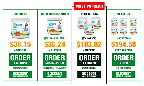 POTASSIUM RICH | This complete and balanced, soluble electrolytes give 1000 mg of potassium per serving size. This is higher that any electrolyte powder on the market. Our bodies need 4,700 mg of potassium citrate each day and many people only get a fraction of this in their diet. You’ll also get the other electrolytes in the perfect balance.