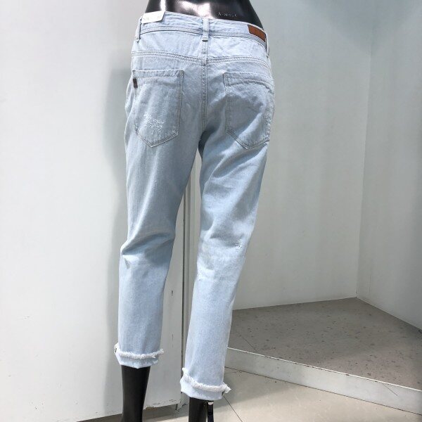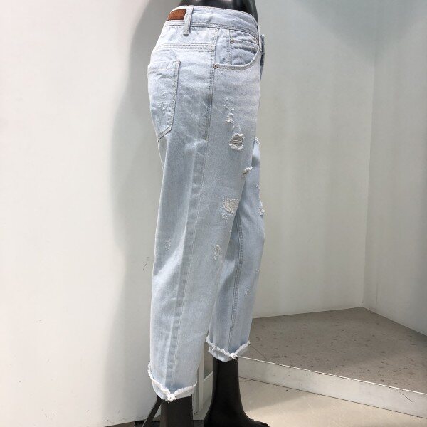 전체적으로 여유가 있으면서 앞뒤 밑위길이가 길어 골반에 살짝 걸쳐서 루즈하게 착용해야 핏감을 제대로 살릴 수 있는 제품입니다. 밑단으로 좁아지는 실루엣으로 롤업의 형태로 코디하면 멋스러운 핏입니다.