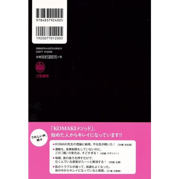 【商品説明】 定価(税込み):1,296円 値引き:10% OFF プロのワザを初公開。たった30秒の簡単マッサージで、顔のむくみ、たるみがみるみるすっきり。「骨」を押して「骨格」から整えれば、効果は全身におよびます。決め手は「首」。首の“ツマリ”をとれば、肌はプルプル、髪にツヤ、冷え性解消、免疫力アップ! バーゲンブック 新品 特価 格安 ビューティー&ヘルス 美容 ヘアケア ネイルケア プロ ヘア ケア ビューティー ヘルス | |
