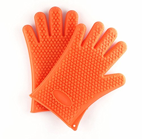 Oven Mitts, Heat Resistant Silicone Cooking Gloves, Insulated Grill Mittens Waterproof Silicone Kitchen Gloves with Hanging Hole, Non-slip Grip for Baking, BBQ, One Pair, Orange