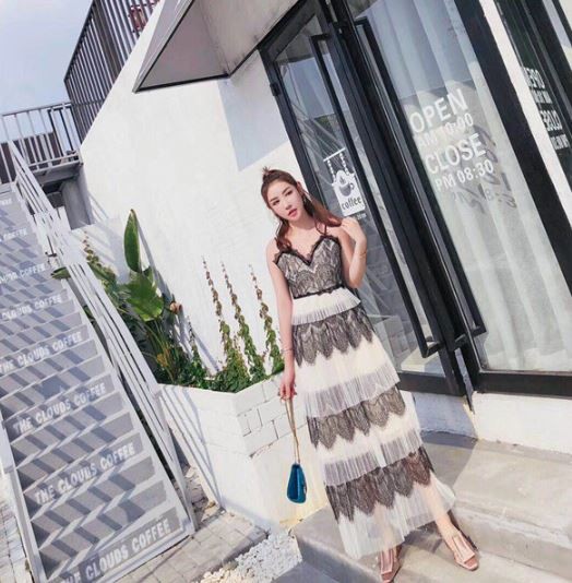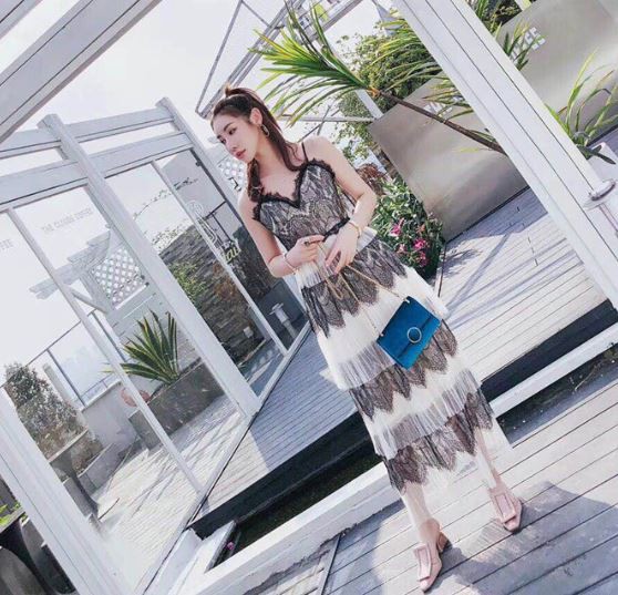 ティアードレースの透け感がセクシーなサマードレスです。