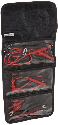 - Feature : Compatible with most multimeters that accept safety style sheath banana plugs. / CE Compliant; complies with IEC 61010-031 standard for hand held accessories. / Test accessories conveniently stored in the tri-fold nylon pouch. / Banana plugs are molded directly to the wire for superior pull strength.