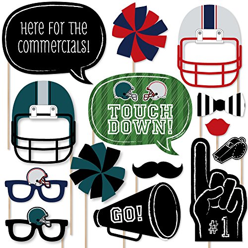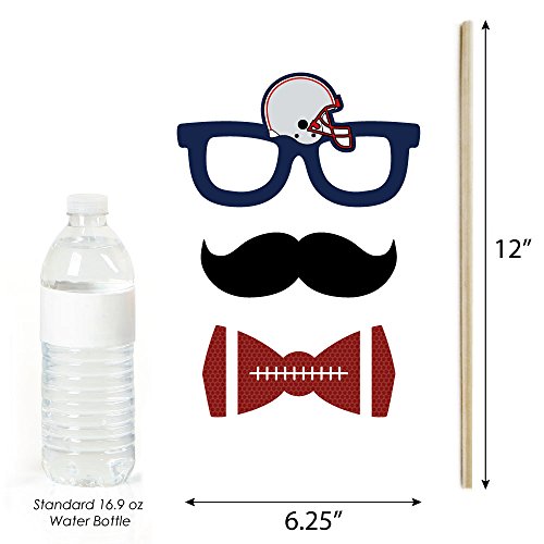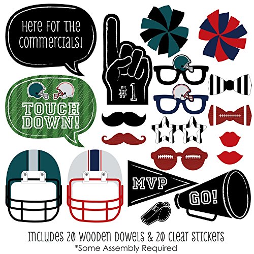 20-Piece Football Photo Booth Props Kit INCLUDES 20 Super Bowl photo booth props, 20 wooden dowel sticks and adhesives for assembly. EASY ASSEMBLY: Simply attach the printed DIY photo booth props to the wooden dowels with included adhesive and reinforcing stickers.