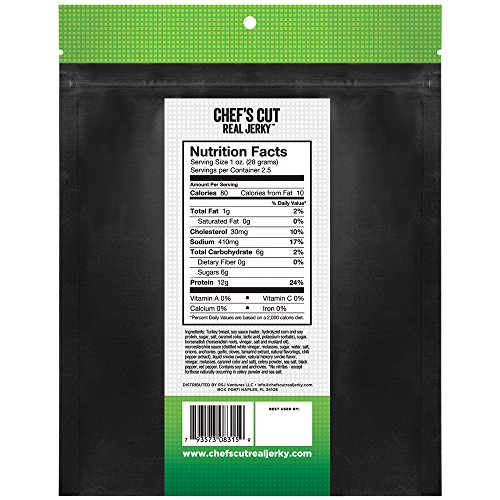 ReleaseDate : 2014-10-11 Studio : Chef's Cut Real Steak Jerky Publisher : Chef's Cut Real Steak Jerky Binding : Grocery Product Description Whether you're going camping for the weekend, or road tripping with your friends to an undisclosed destination, a bag (or 10) of Chef’s Cut Real Jerky is the perfect savory snack to pack along. Rich in protein low in fat, this jerky is made from premium cuts of all white turkey breast and doused in the finest ingredients sure to vigorously stimulate your taste buds. 0
