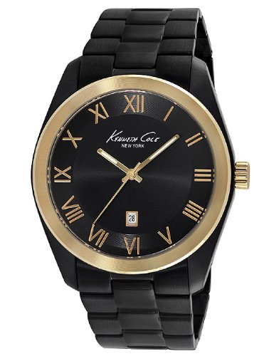 Studio : Kenneth Cole New York Publisher : Kenneth Cole New York Binding : Watch Product Description Dress watch, Japanese quartz movement, Polished rose-gold-tone hands with luminous accents, Polished rose-gold-tone sweep seconds, Applied polished rose-gold-tone Roman numerals, Analog date aperture above six o'clock position, Brushed black dial with silver-tone logo below twelve o'clock position, Brushed black-ion-plated stainless steel bracelet with polished inserts, adjustable links and push-button-clasp, Polished rose-gold-tone stainless steel bezel, Brushed black-ion-plated stainless steel round case, Textured rose-gold-tone steel crown, Stainless steel caseback, Mineral crystal, 3 ATM (30 meters/100 feet water resistant) 0