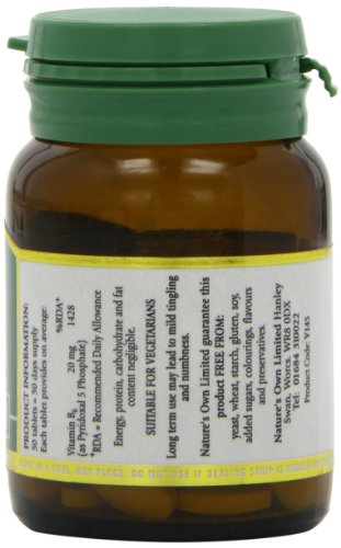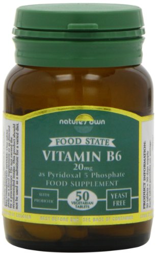 -. Binding : Health and Beauty -. Brand : Nature's Own -. EAN : 5021758008204 -. Feature : Vitamin B6 contributes an important role in the functioning of the immune and nervous systems due to its production of red cells and the cells of the immune system / Vitamin B6 contributes to the regulation of body fluids through maintaining balances of sodium and potassium / The need for vitamin B6 increases during pregnancy and lactation / Food state vitamin B6 and that found in foods is in the form of pyridoxal 5 phosphate, the bioactive and enzymatically converted form of B6 / Nature's own pyridoxal is beneficially combined in a probiotic base -. IsAdultProduct : 0 -. Label : NATURES OWN -. Manufacturer : NATURES OWN -. Model : 653881 -. MPN : 653881 -. NumberOfItems : 1 -. PackageQuantity : 1 -. PartNumber : 653881 -. ProductGroup : Health and Beauty -. ProductTypeName : HEALTH_PERSONAL_CARE -. Publisher : NATURES OWN -. Size : 50tabs -. Studio : NATURES OWN -. Title : Natures Own Vitamin B6 20mg 50 tablet
