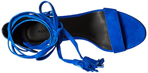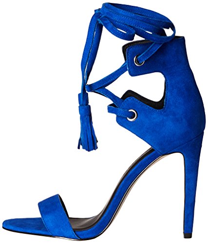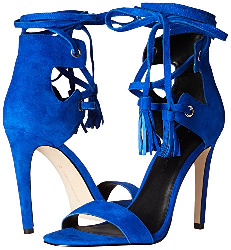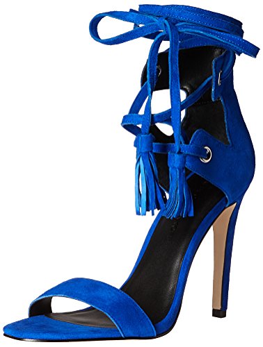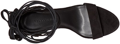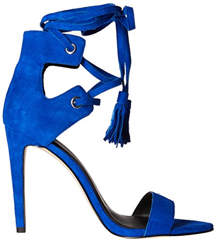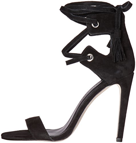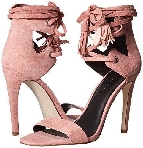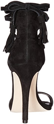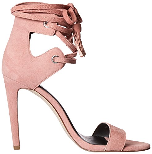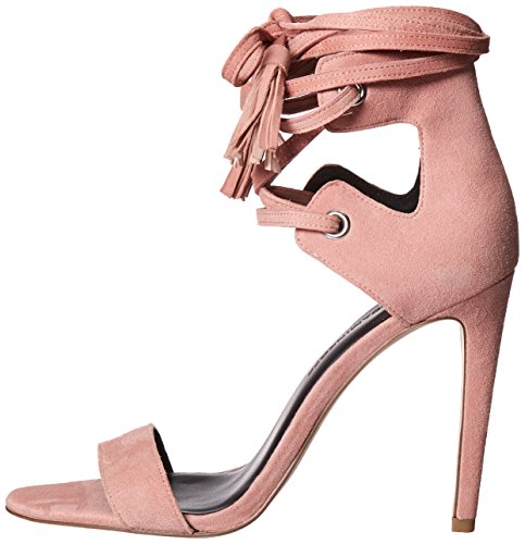 Two-piece sandal in faux suede featuring covered heel and ankle wrap with tasseled tie