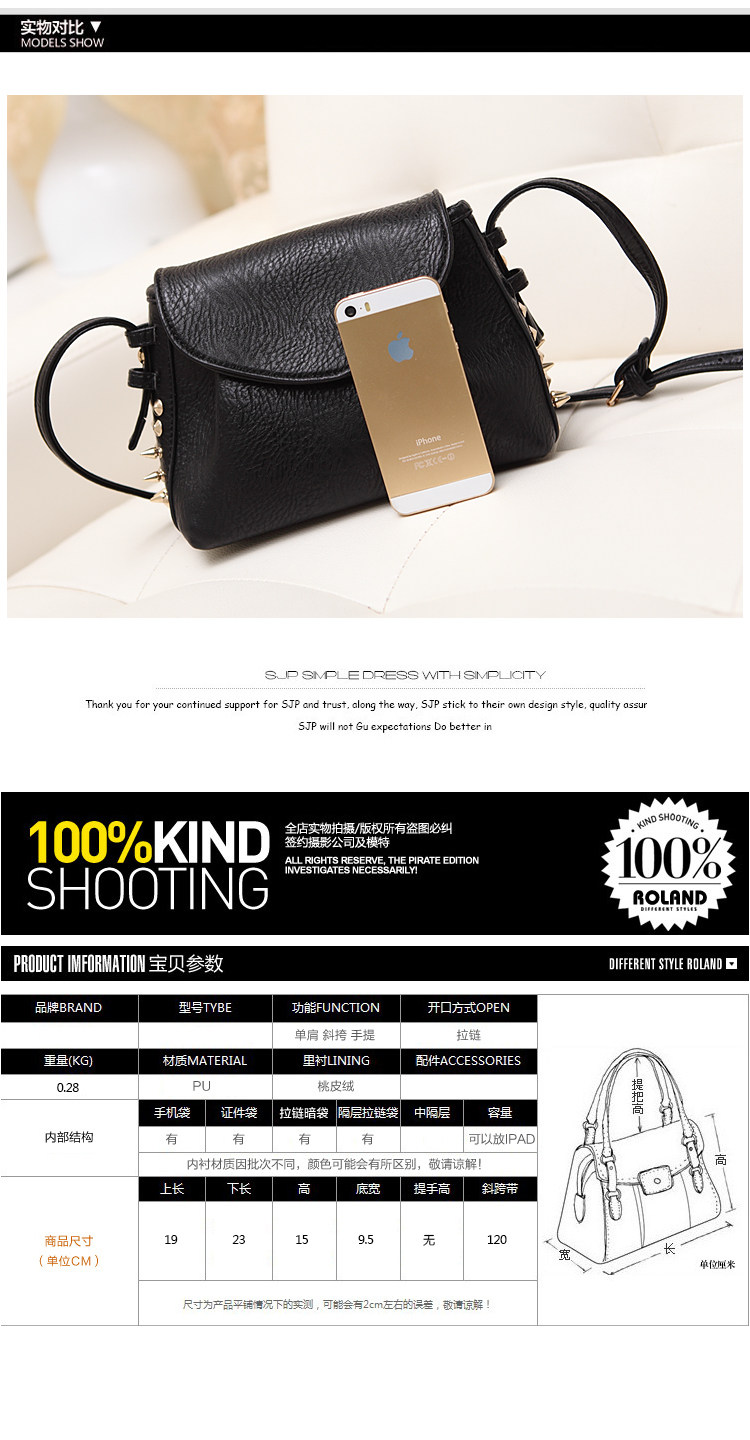 Height, 15CM bottom width, 9.5CM strap length 120CM