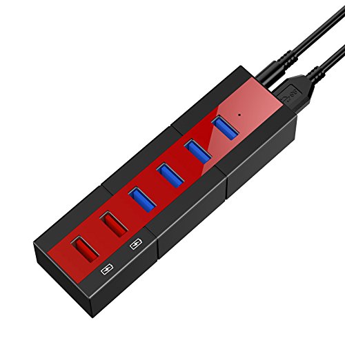-. Title : USB Hub, KOOTION 6-Port USB3.0 Hub Including 4 High Speed USB3.0 Data Transfer Ports and 2 BC1.2 Smart Charging Ports with Power Adapter ( 5V / 3A )