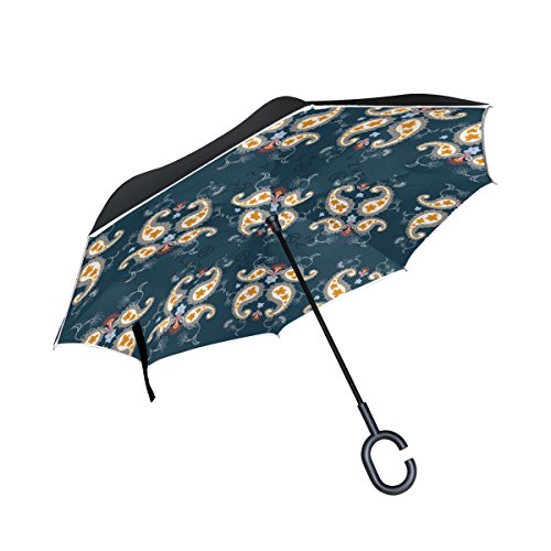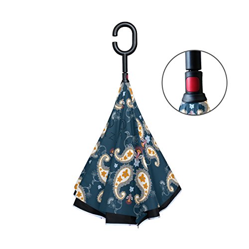 (AHOMY)/Accessories/Umbrellas/DIRECT FROM USA/AHOMY Paisley Flower Art Large Double Layer Inverted Umbrella Windproof UV Protection With C-Sh...