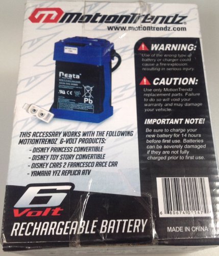 ()/Play Vehicles/Radio Remote Control/DIRECT FROM USA/Motion Trendz 6volt Rechargeable Battery