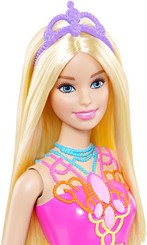 Studio : Mattel Publisher : Mattel Binding : Toy Product Description This wonderfully colorful mermaid makes a marvelous splash in the sea! A gorgeously decorated tail, detailed accents and color-streaked hair set imaginations sailing. Inspired by her fairytale rainbow kingdom, she wears a plastic pink bodice with an attached rainbow-bead necklace and has a vibrant ombre rainbow tail in neon colors. A removable matching headpiece looks adorable in her long pink hair. Tell all kinds of tales with this gorgeous mermaid, and collect them all to expand the fairytale fun and storytelling possibilities, because with Barbie, you can be anything (each sold separately, subject to availability). Includes mermaid doll with removable hairpiece. Doll cannot stand alone. Colors and decorations may vary. 0