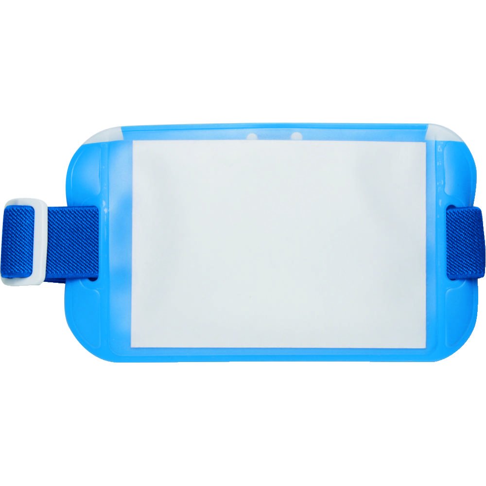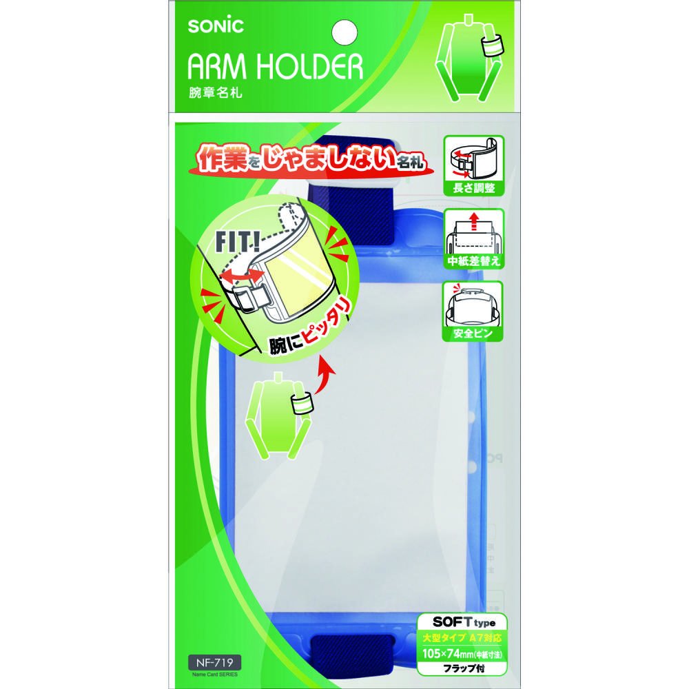 Armband-shaped name tag that does not disturb movement of work etc.