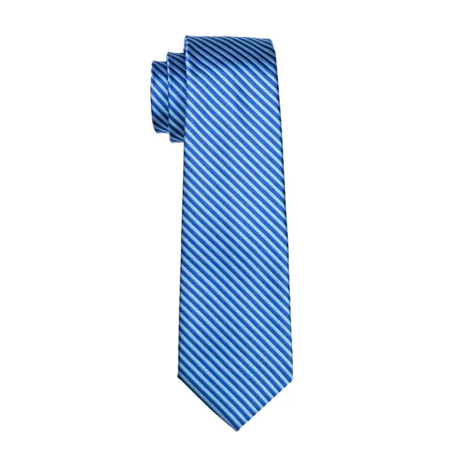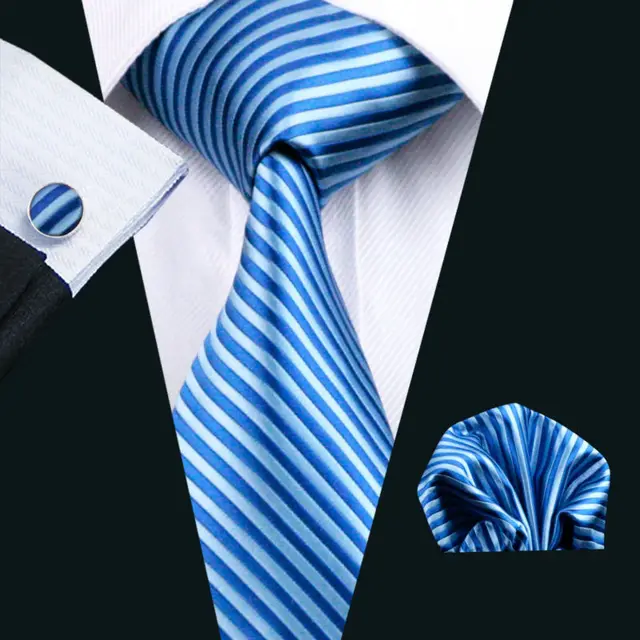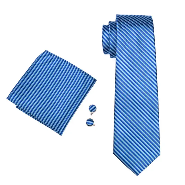 LS-1204 남성 넥타이 블루 스트라이프 100% 실크 브랜드 패션 넥타이 손수건 커프스 세트 남성 정장 웨딩 파티 비즈니스 무료 우표