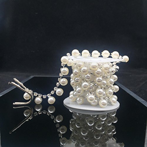 1 Yard Sew-On Teardrop Beaded Pearl Rhinestone Trim for Wedding Embellishment and Bridal Dress