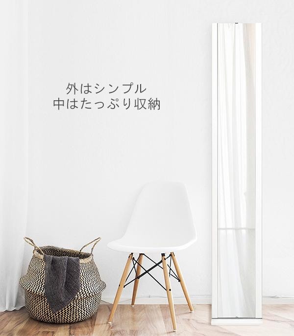 | 見た目はスッキリ全身ミラー。内部はたっぷり収納スペース!! |