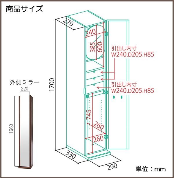 | サイズ | W290×D330×H1700mm 個装サイズ:37×34×173cm |