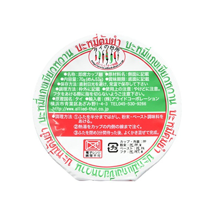 원본상품명: アライド タイの台所 カップトムヤムラメン(53g) 70g×12個