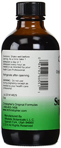 -. Binding : Health and Beauty -. Brand : Christophers Original Formulas -. Department : Health and Beauty>Health and Wellness -. EAN : 0084783885511 -. Feature : This is the best remedy for colds flu or any communicable disease / This formula strengthens and stimulates your immune system and should be used as a tonic / If infected the dosage changes to one tablespoon every hour -. IsAdultProduct : 0 -. Label : Everready First Aid -. LegalDisclaimer : * These statements have not been evaluated by the Food and Drug Administration. This product is not intended to diagnose, treat, cure or prevent any disease. ** Always refer to the manufacturer's label on the product for description, recommended dose and precautions. -. Manufacturer : Everready First Aid -. Model : 084783885511 -. MPN : 689552 -. NumberOfItems : 1 -. PackageQuantity : 1 -. PartNumber : 689552 -. ProductGroup : Health and Beauty -. ProductTypeName : HEALTH_PERSONAL_CARE -. PublicationDate : 2015-12-18 -. Publisher : Everready First Aid -. ReleaseDate : 2015-12-15 -. Size : 4 oz -. Studio : Everready First Aid -. Title : Christopher's Original Formulas Super Garlic Immune Formula, 4 Fluid Ounce -. UPC : 084783885511