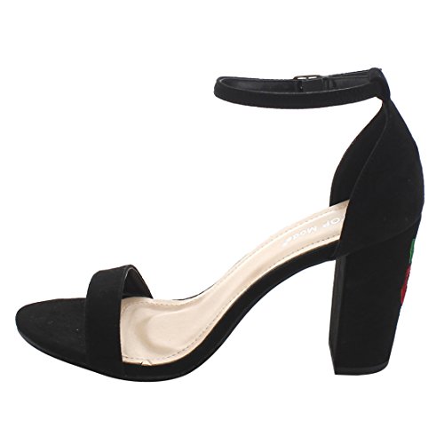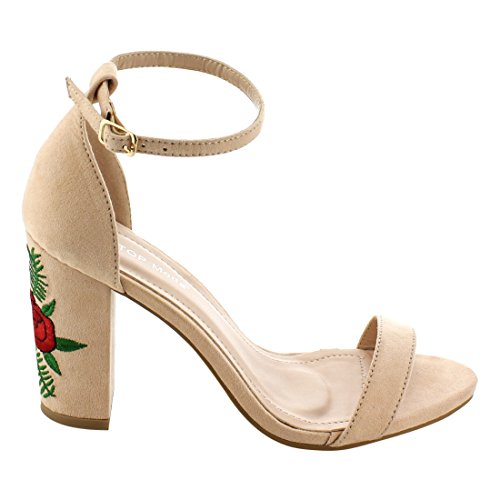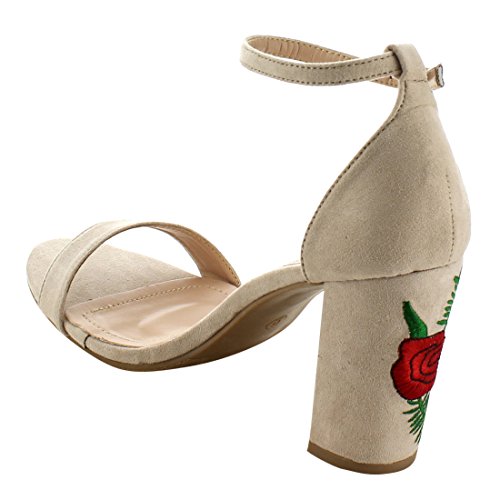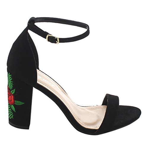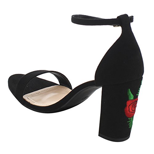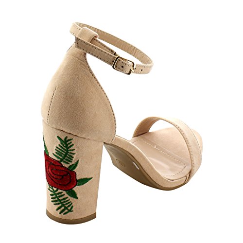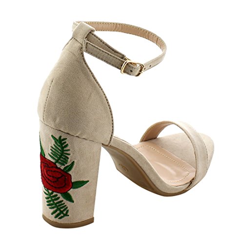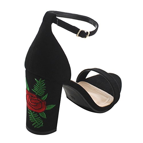 Product Description These shoe are featuring open toe, faux suede upper, single strap, ankle strap with buckle closure,embroidered design on heel, end up with high block heels. 0